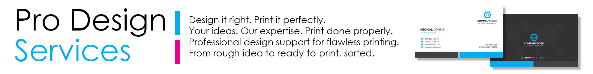 Getting artwork ready for printing can be complicated — incorrect sizes, low-resolution images, missing bleed, or colour issues can all affect the final result. Our print design services are built specifically around real production requirements, helping you avoid delays and ensuring your designs print exactly as expected.